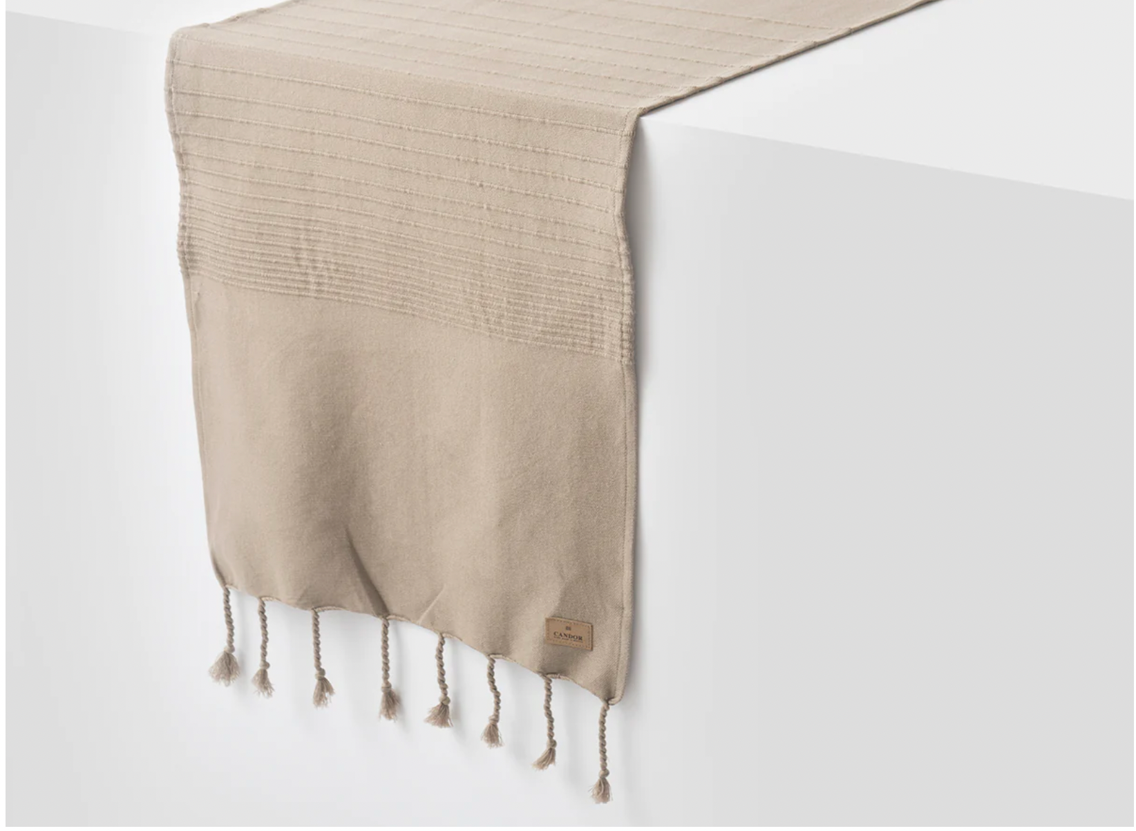 Camino de mesa 100% algodón cepillado. Es un complemento elegante para cualquier mesa. Tejido en telar de pedal en Pátzcuaro, México, donde las artesanas también los terminan a mano con lindos flecos en los bordes.